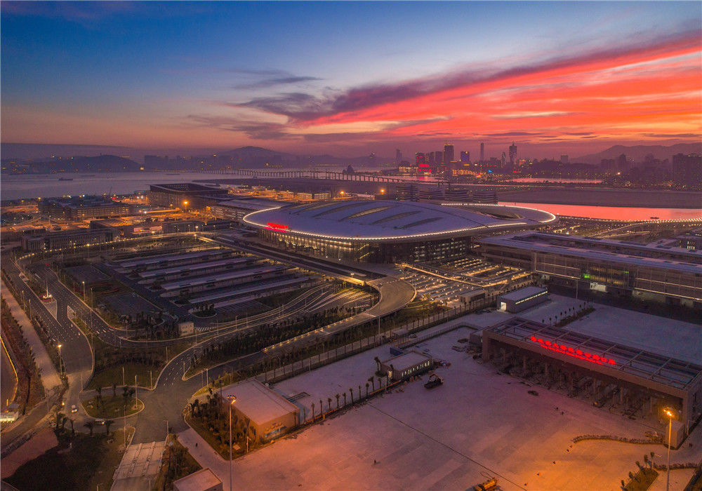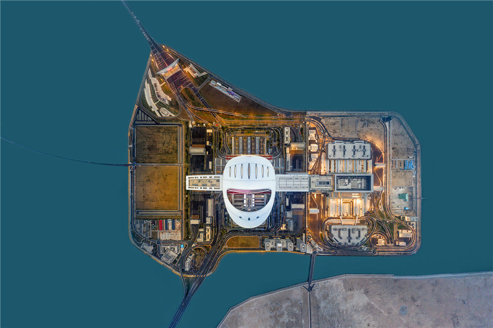 晨曦中的港珠澳大橋珠澳口岸人工島(10月24日無人機拍攝)。2018年10月23日,港珠澳大橋正式開通。在這座圓夢橋、同心橋、自信橋、復興橋開通一周年之際,記者親自體驗“一橋連三地、一日游三城”的悠閑與便利,于不同的旖旎風光中自在游覽,在不同的城市風貌間自如切換。新華社記者張金加攝