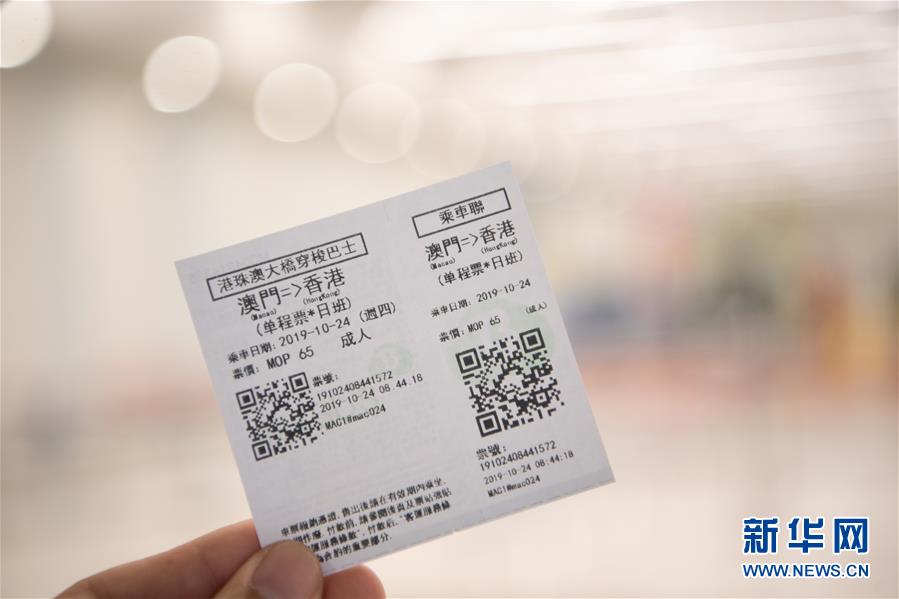 這是澳門往香港方向的港珠澳大橋穿梭巴士車票(10月24日攝)。2018年10月23日,港珠澳大橋正式開通。新華社記者張金加攝