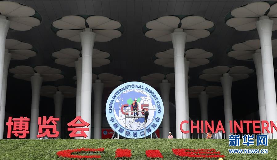 這是10月25日拍攝的國(guó)家會(huì)展中心(上海)西入口處。 第二屆中國(guó)國(guó)際進(jìn)口博覽會(huì)開幕在即,在進(jìn)博會(huì)舉辦地、國(guó)家會(huì)展中心(上海)內(nèi),展館搭建施工人員和展會(huì)志愿者們?cè)谶M(jìn)行從展臺(tái)搭建到完善觀展標(biāo)識(shí)等的布展準(zhǔn)備工作。 新華社記者 方喆攝