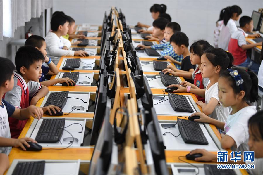 9月3日,金寨縣希望小學(xué)南校區(qū)學(xué)生在上計算機(jī)課。新華社記者張端攝