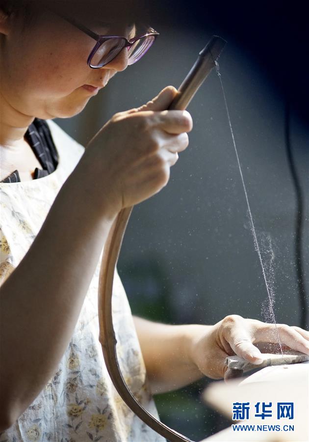 北京金漆鑲嵌有限責任公司的技師在制作玉雕鑲嵌件(10月31日攝)。新華社記者李欣攝