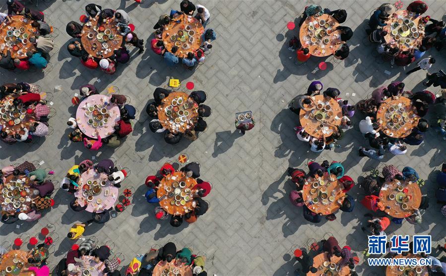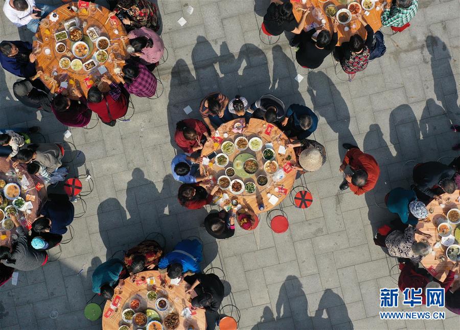 11月2日,南京仙林街道仙林新村社區(qū)居民參加千家宴(無人機(jī)拍攝)。  新華社記者 季春鵬 攝