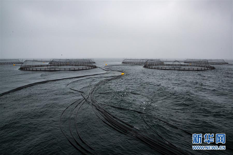 這是9月13日在俄羅斯摩爾曼斯克以北的巴倫支海域拍攝的隸屬于俄羅斯水產(chǎn)養(yǎng)殖公司的鮭魚養(yǎng)殖場。 新華社記者白雪騏攝