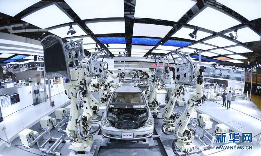 11月5日在第二屆進(jìn)博會(huì)裝備展區(qū)日本那智不二越公司展臺(tái)拍攝的超高速點(diǎn)焊SRA系列機(jī)器人。當(dāng)日,第二屆中國(guó)國(guó)際進(jìn)口博覽會(huì)在上海國(guó)家會(huì)展中心開(kāi)幕。新華社記者王鵬攝