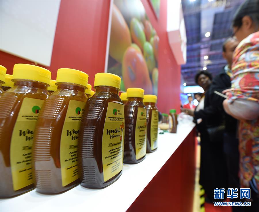 參觀者在第二屆進博會上了解贊比亞蜂蜜(11月6日攝)。新華社記者尹炣攝