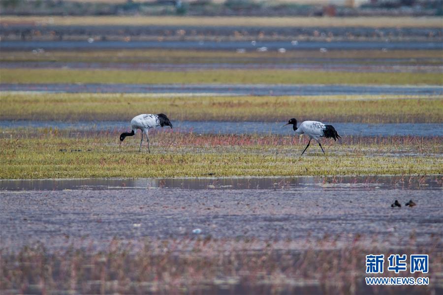 黑頸鶴在納帕海自然保護區(qū)棲息(11月10日攝)。 新華社記者 胡超 攝