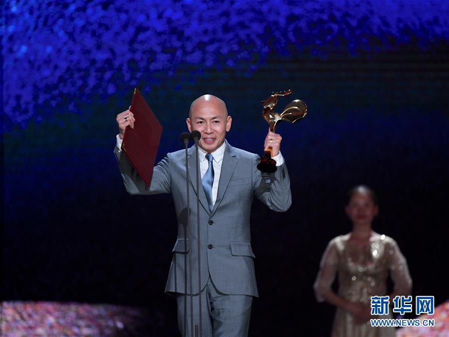 11月23日,電影《紅海行動》導演林超賢獲得最佳導演獎。當日,第32屆中國電影金雞獎頒獎典禮在福建廈門舉行。新華社記者姜克紅攝