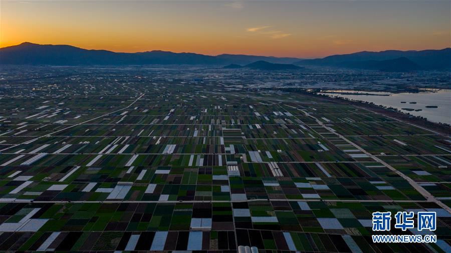 這是云南省玉溪市通??h的田園風(fēng)光(11月23日無人機(jī)拍攝)。初冬時(shí)節(jié),云南省玉溪市通海縣風(fēng)景秀麗,山巒、湖水與農(nóng)田組成了一幅美麗的田園詩(shī)畫卷。新華社記者胡超攝
