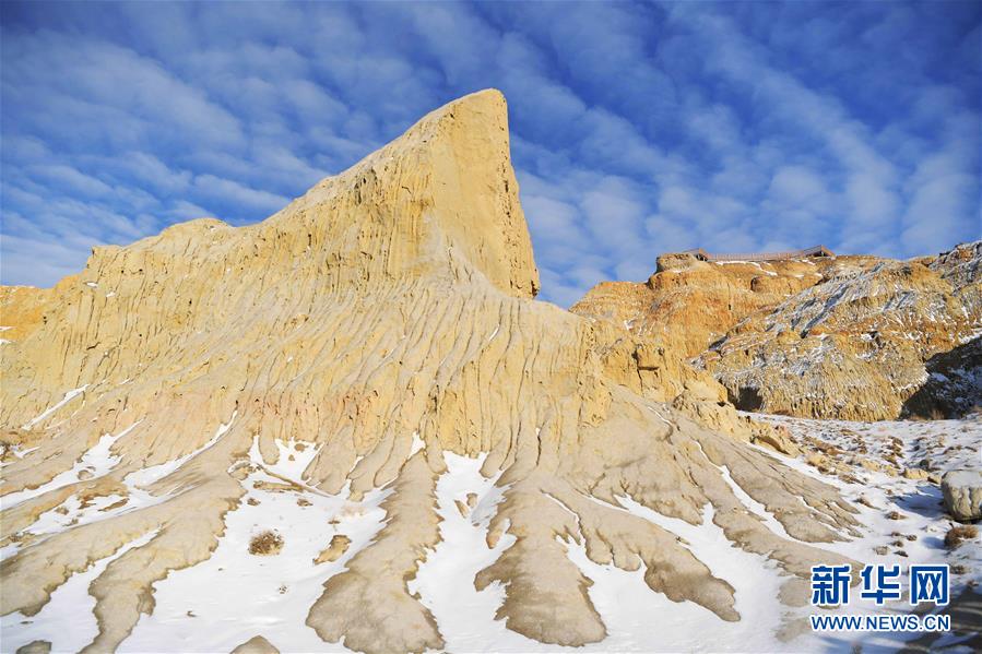 11月26日拍攝的新疆福??h烏倫古湖海上魔鬼城景區(qū)美景。福??h烏倫古湖海上魔鬼城景區(qū)位于新疆阿勒泰地區(qū)福??h吉力湖東岸,有著獨(dú)特的雅丹地貌和水域景觀,是當(dāng)?shù)刂穆糜蝿俚亍P氯A社記者沙達(dá)提攝
