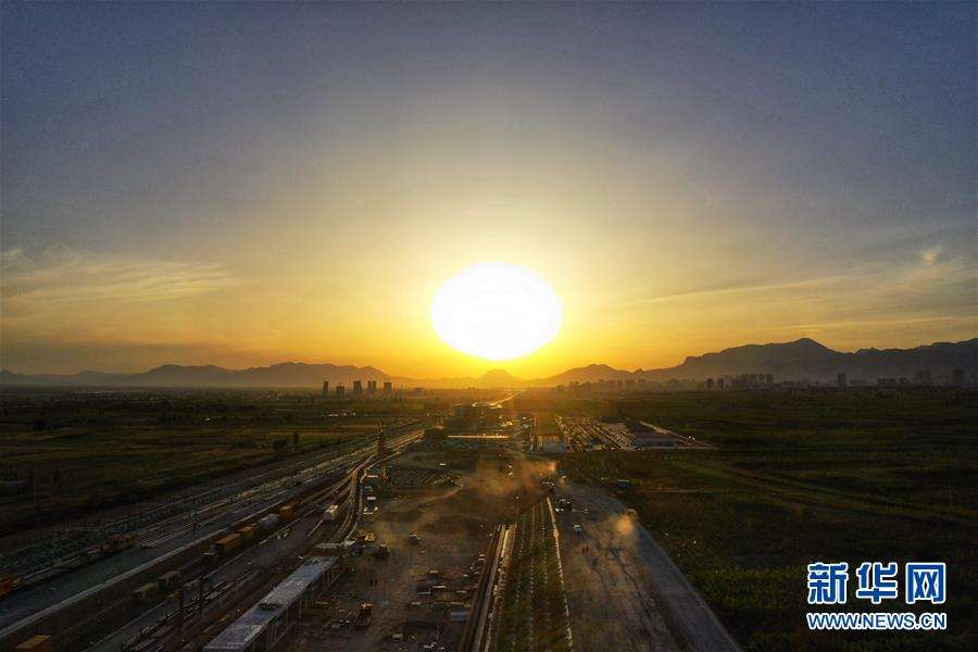 5月28日無(wú)人機(jī)拍攝的建設(shè)中的京張高鐵懷來(lái)站。新華社記者邢廣利攝