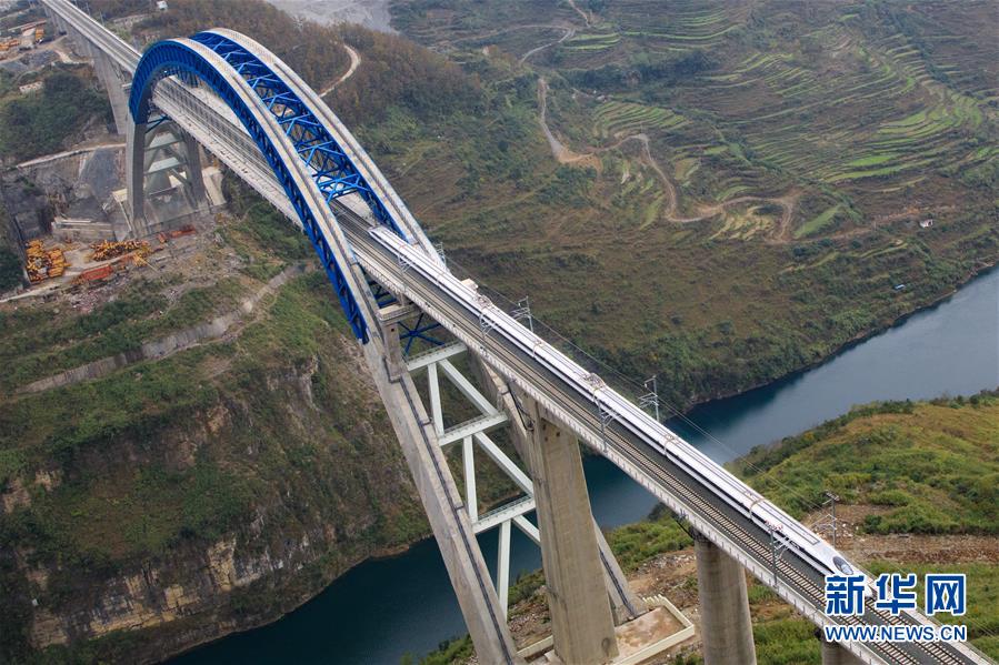 12月2日,一輛試驗列車駛過成貴高鐵鴨池河特大橋。當(dāng)日,正在進(jìn)行聯(lián)調(diào)聯(lián)試的成貴高鐵進(jìn)入全線拉通空載模擬運(yùn)行階段,試驗列車將在成都到貴陽區(qū)間內(nèi)全線路運(yùn)行。線路全長650公里的成貴高鐵是我國“八縱八橫”高速鐵路網(wǎng)的重要組成部分,設(shè)計時速為250公里。新華社記者劉續(xù)攝