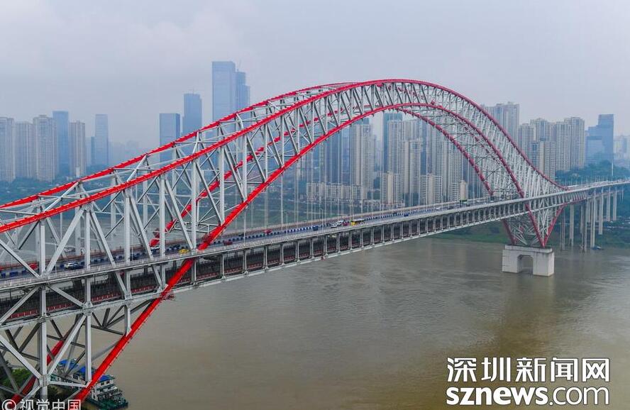 【世界跨徑最大鋼拱橋——朝天門長江大橋】重慶朝天門長江大橋主跨長552米,超過1996年建成的跨徑550米的黃埔大橋,成為世界跨徑最大的鋼拱橋。2006年3月動工,2009年4月通車。