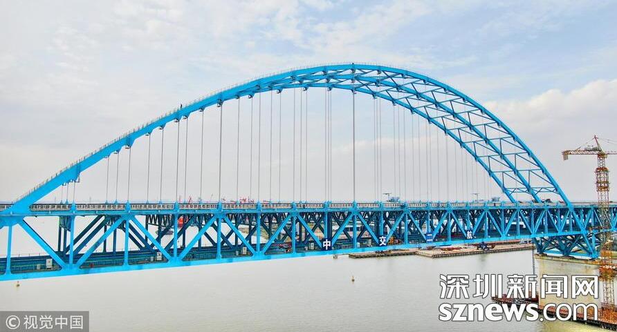 3月14日,施工人員在鴨池河特大橋上拆除輔助設(shè)施。新華社記者劉續(xù)攝