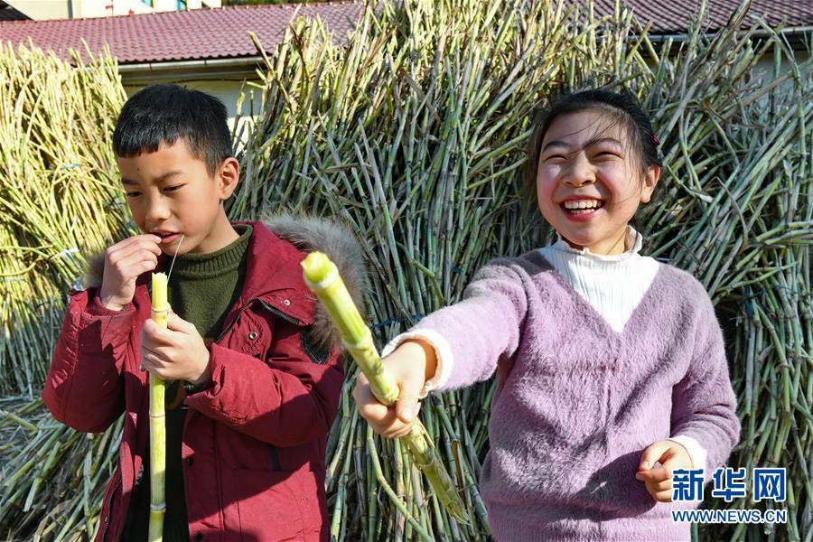 12月7日,松溪縣鄭墩鎮(zhèn)萬前村的小朋友在吃“百年蔗”。近期,福建省松溪縣鄭墩鎮(zhèn)萬前村特色甘蔗品種“百年蔗”進(jìn)入采收期,當(dāng)?shù)剞r(nóng)民砍蔗制糖,一派繁忙景象。近年來,萬前村大力發(fā)展蔗糖生產(chǎn),帶動農(nóng)民脫貧致富,目前全村種植“百年蔗”面積達(dá)420畝。新華社記者張國俊攝