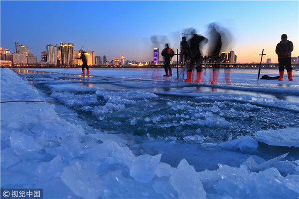 寒冬采冰人:起早貪黑 “淘金”冰雪