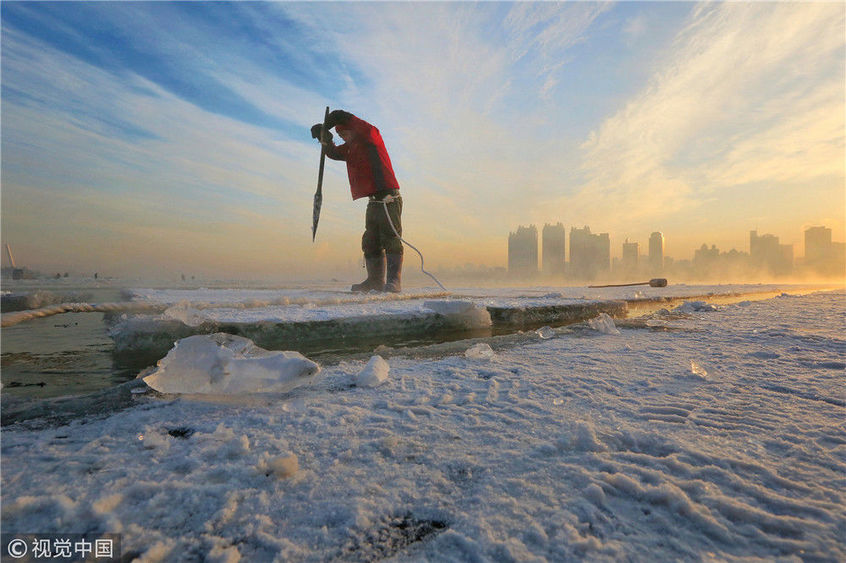寒冬采冰人:起早貪黑 “淘金”冰雪