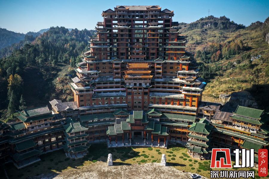 2019年12月8日,貴州省黔南布衣族自治州。位于獨(dú)山縣影山鎮(zhèn)凈心谷的水司府堂占地面積5900平方米,總建筑面積60000平方米,共24層,高99米,進(jìn)深240米,是世界上最高最大最壯觀的水族建筑,被稱為“天下第一水司樓”。