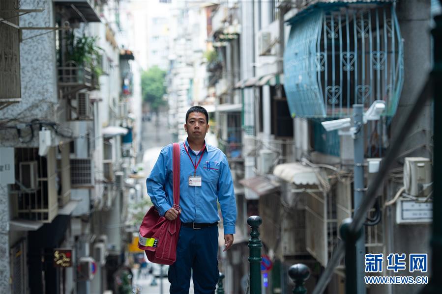 12月5日,澳門(mén)郵電局郵差劉振驅(qū)去投送信件,他已經(jīng)工作了4年。 新華社記者 張金加 攝