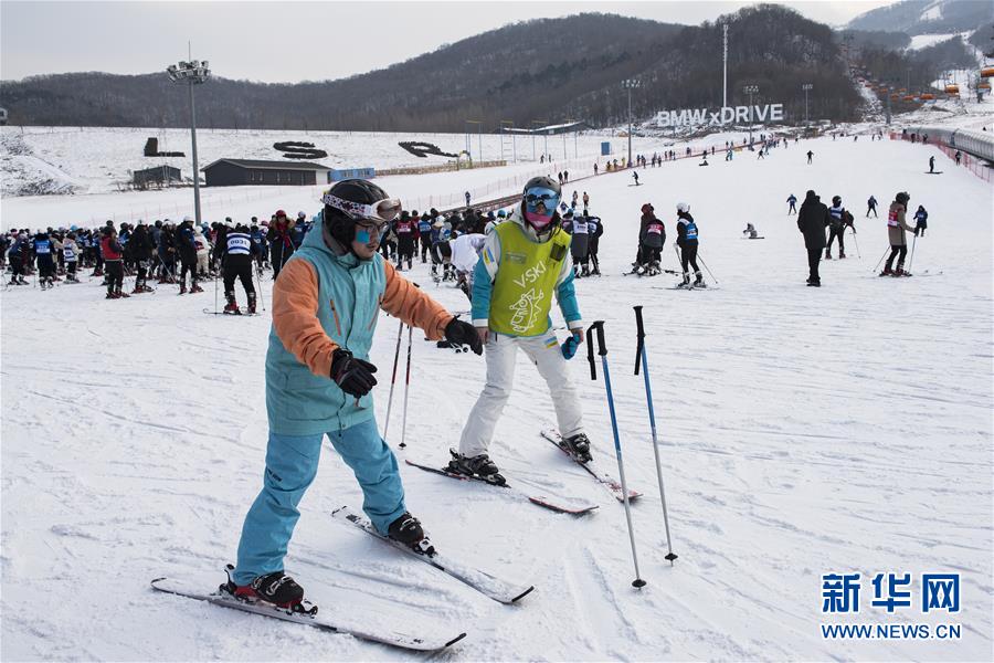 12月13日,滑雪愛(ài)好者在吉林市萬(wàn)科松花湖度假區(qū)做滑雪前的熱身。新華社記者 張豪夫 攝