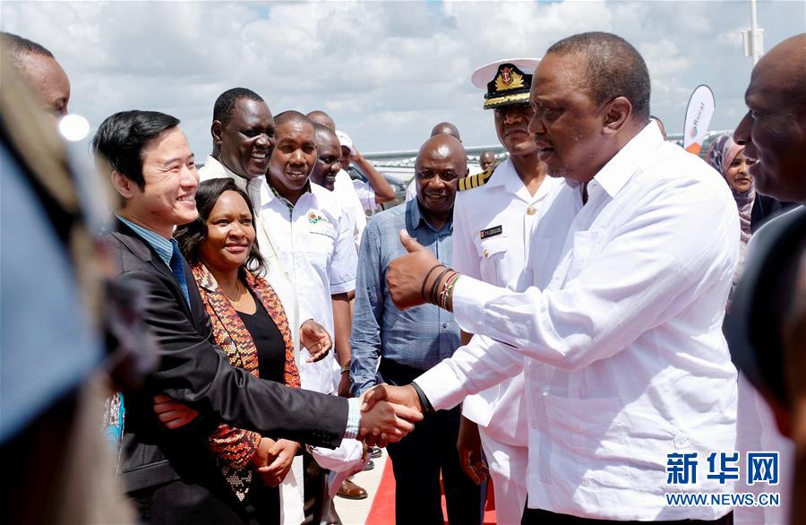 12月13日,在肯尼亞加里薩郡,肯尼亞總統(tǒng)烏胡魯·肯雅塔(右)出席光伏發(fā)電站投運(yùn)啟動(dòng)儀式。 中企承建的東非最大光伏電站肯尼亞加里薩50兆瓦光伏發(fā)電站13日正式投入運(yùn)營??夏醽喛偨y(tǒng)肯雅塔在投運(yùn)啟動(dòng)儀式上致辭說,這一電站將為加里薩帶來穩(wěn)定供電,助力當(dāng)?shù)亟?jīng)濟(jì)發(fā)展。 新華社記者 楊臻 攝