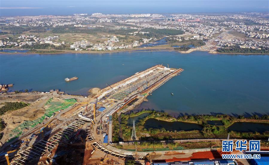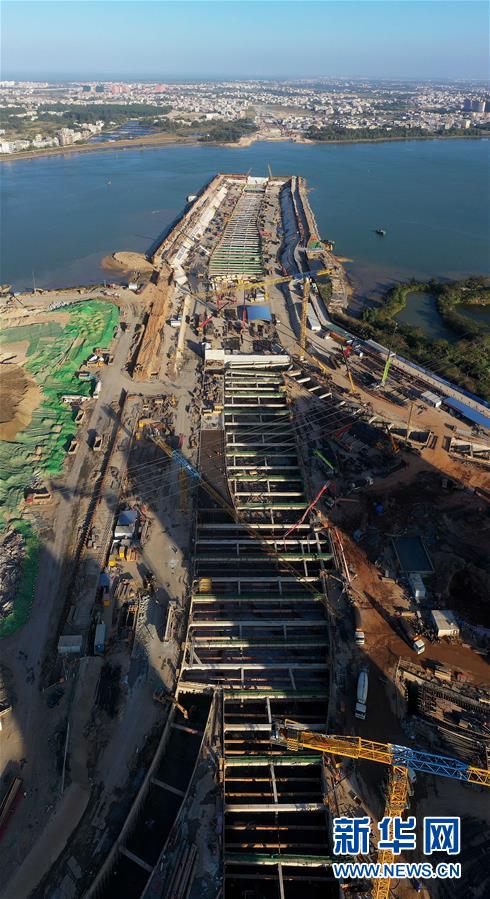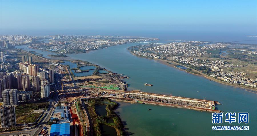 正在施工的海口文明東越江通道項目(12月14日無人機拍攝)。 海口文明東越江通道項目是連接??谥鞒菂^(qū)和江東新區(qū)的重要紐帶,2018年底開工,全長4.38千米,其中隧道段2.72千米。據(jù)了解,目前項目總工程量已過半,將力爭在2020年4月份建成并實現(xiàn)功能性通車。 新華社記者 郭程 攝