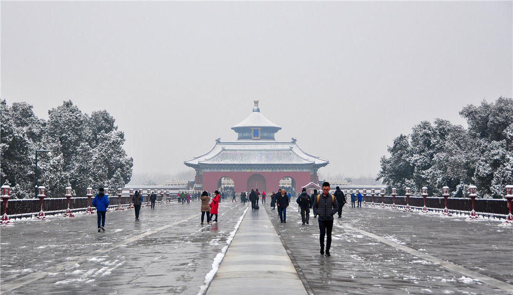 2019年11月30日,北京,天壇公園里觀雪賞景的市民絡(luò)繹不絕。喬?。垐D像/視覺中國
