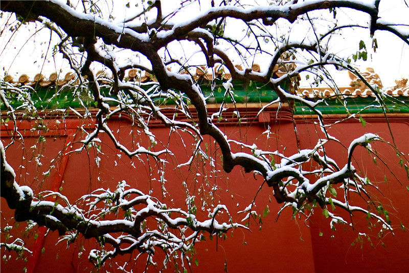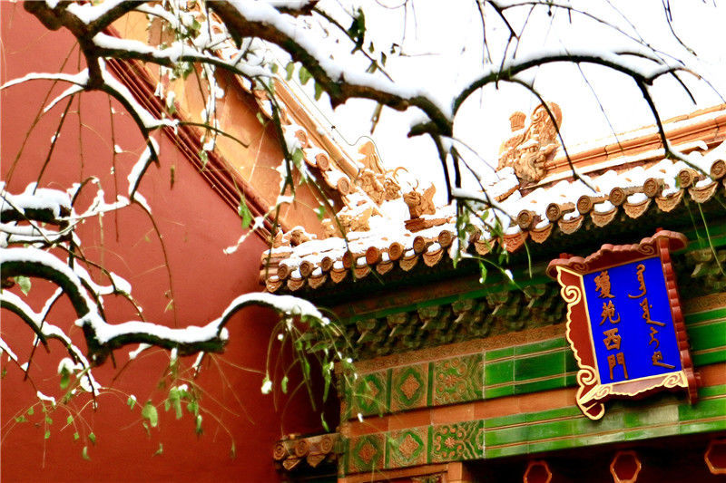 2019年11月30日,北京,一場初雪后,城市銀裝素裹,故宮博物院迎來今年第一批賞雪游客。
