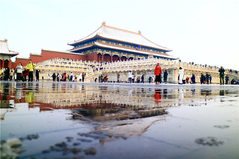 2019年11月30日,北京,初雪過后,故宮美景如畫,吸引大批游客前來“打卡”。