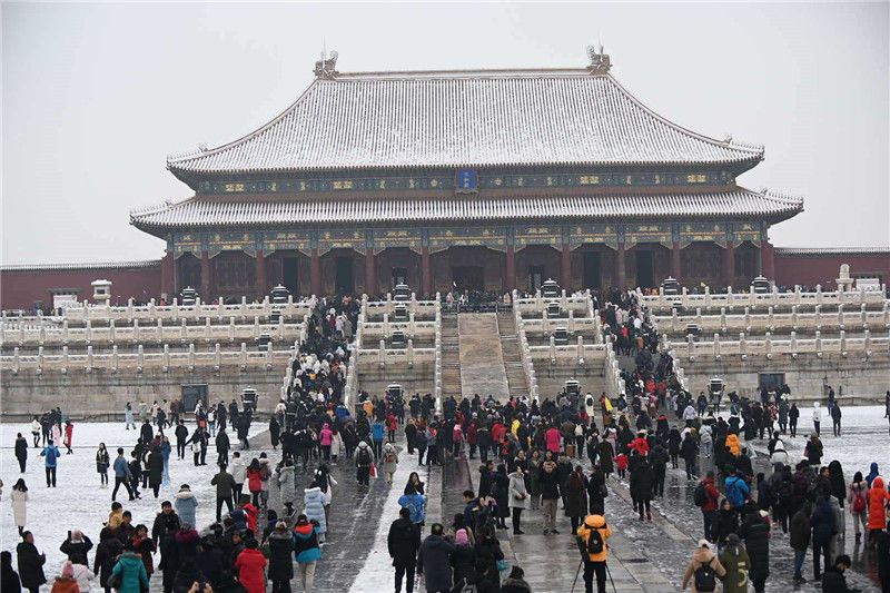2019年11月30日,北京,初雪過后,故宮迎來大批賞雪游客。