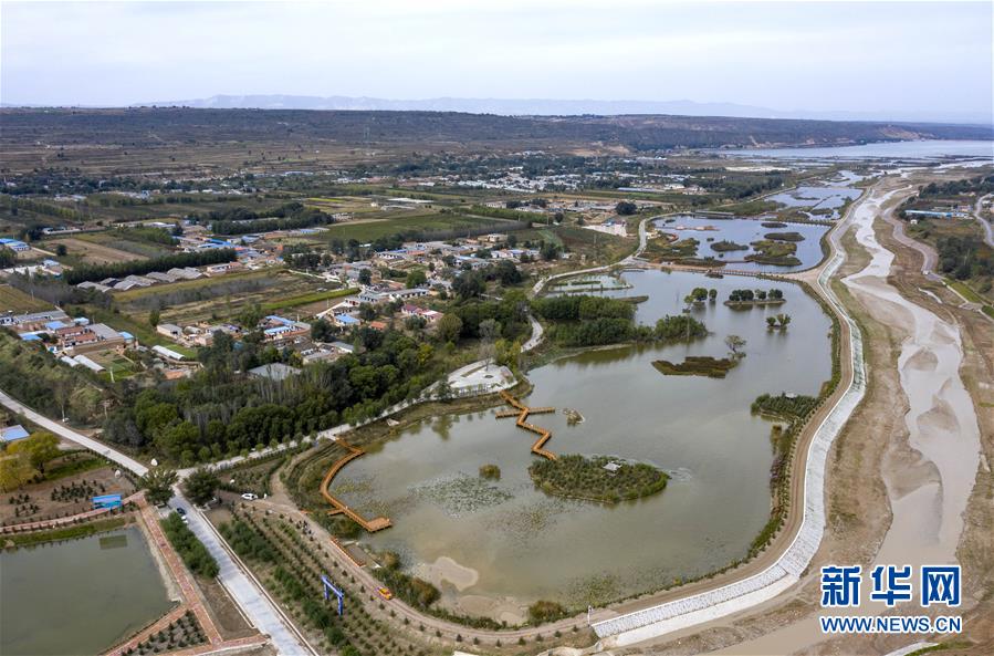 寧夏固原市原州區(qū)境內(nèi)的清水河流域在進(jìn)行防洪加固和人工濕地工程建設(shè)(10月10日無人機拍攝)。 新華社記者 馮開華 攝