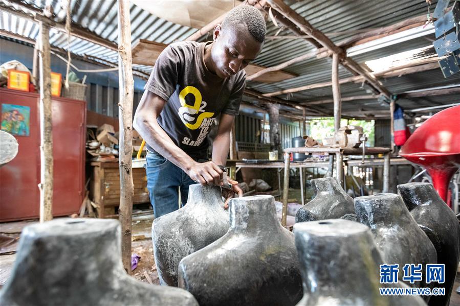 12月20日,在肯尼亞內(nèi)羅畢庫奧納藝術(shù)中心,一名藝術(shù)家在工作室內(nèi)創(chuàng)作作品。 新華社記者 王騰 攝