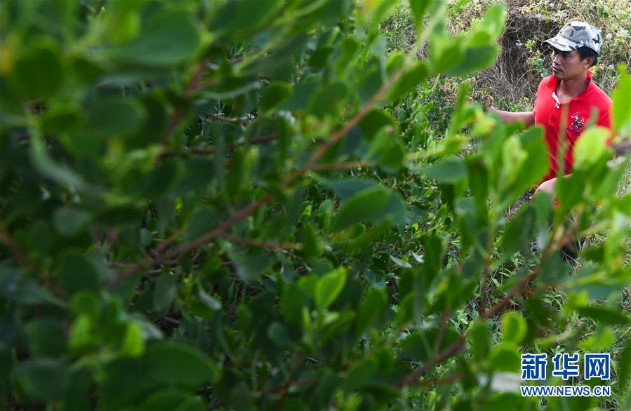 海南新盈紅樹(shù)林國(guó)家濕地公園巡護(hù)員兼監(jiān)測(cè)員羅理想(12月11日攝)。 羅理想2006年起開(kāi)始參與紅樹(shù)林濕地的保護(hù)工作,近年來(lái)他參加了很多關(guān)于濕地的培訓(xùn)。2016年,羅理想在工作中監(jiān)測(cè)到極危鳥(niǎo)種勺嘴鷸,當(dāng)時(shí)有許多媒體做了報(bào)道,后來(lái)他又配合專家在濕地公園里發(fā)現(xiàn)了拉氏紅樹(shù),“那個(gè)時(shí)候感覺(jué)自己的工作很有價(jià)值”,羅理想說(shuō)。 新華社記者楊冠宇攝