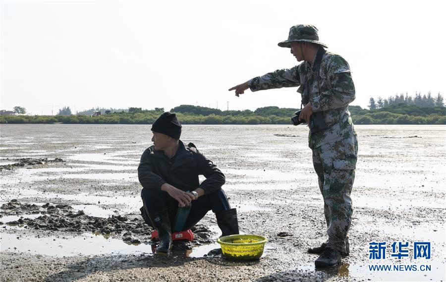 海南儋州新英灣紅樹(shù)林市級(jí)自然保護(hù)區(qū)護(hù)林員陳正平(右)在保護(hù)區(qū)內(nèi)的灘涂上向村民普及紅樹(shù)林濕地相關(guān)知識(shí)(12月10日攝)。陳正平2010年開(kāi)始在保護(hù)區(qū)工作,他將工作發(fā)展成愛(ài)好,廣泛參加各種培訓(xùn)和業(yè)內(nèi)交流。他在工作中拍到瀕危鳥(niǎo)類白肩雕出現(xiàn)在海南的照片,這刷新了海南省的鳥(niǎo)種記錄。新華社記者楊冠宇攝