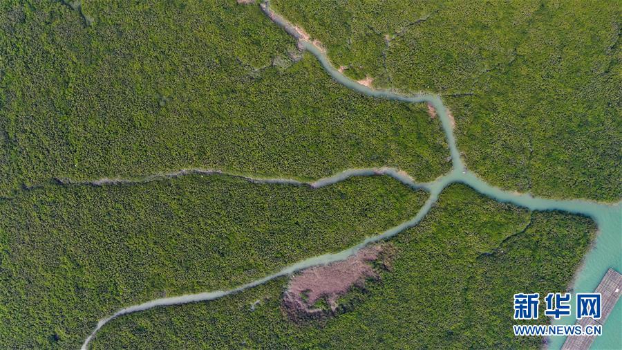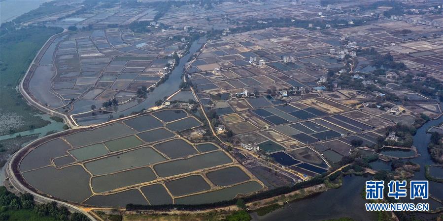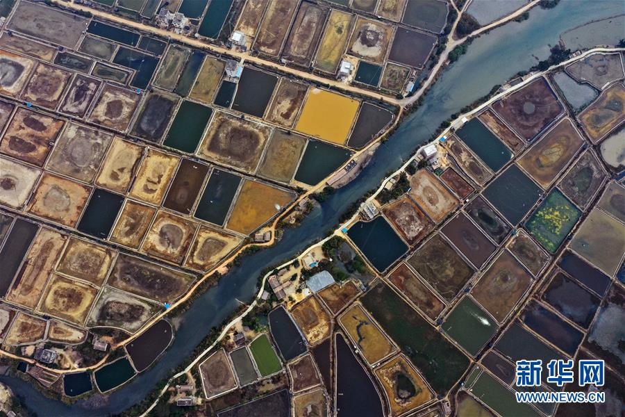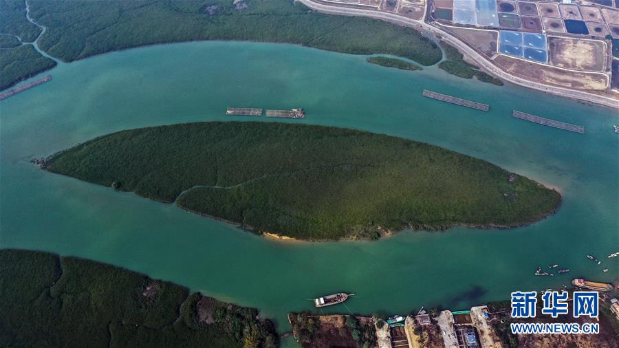 12月21日無人機(jī)拍攝的廣西合浦縣黨江鎮(zhèn)更螺圍出??诘奈r塘。冬日,廣西廉州灣海域風(fēng)光別致。新華社記者張愛林?jǐn)z