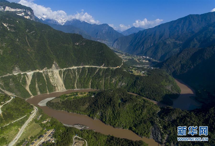 這是無人機(jī)拍攝的“長江第一灣”(3月17日攝)?!伴L江第一灣”位于云南省麗江市玉龍納西族自治縣石鼓鎮(zhèn),萬里長江從青藏高原奔騰而下,與瀾滄江、怒江一起在橫斷山脈的高山深谷中穿行形成并流的壯麗景觀。金沙江在麗江石鼓鎮(zhèn)突然以急轉(zhuǎn)彎轉(zhuǎn)向東北,形成一個(gè)宛若“V”字形的大轉(zhuǎn)彎,得名“長江第一灣”。春日里,“長江第一灣”江水青碧,美景迷人。新華社記者胡超攝