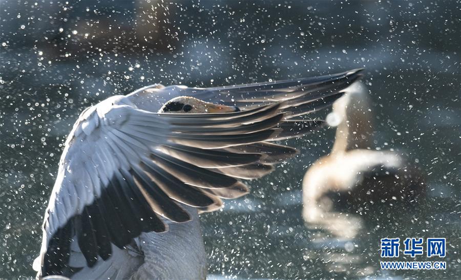 11月21日,候鳥在拉薩龍王潭公園水中嬉戲。時(shí)下,斑頭雁、紅嘴鷗等不少候鳥陸續(xù)飛抵拉薩河谷、雅魯藏布江沿岸等地避寒。新華社記者普布扎西攝