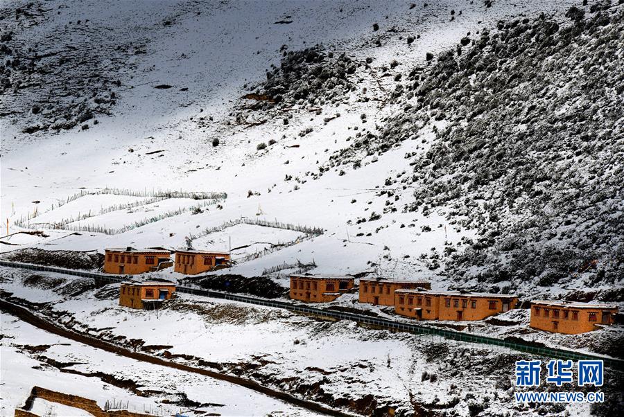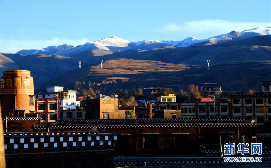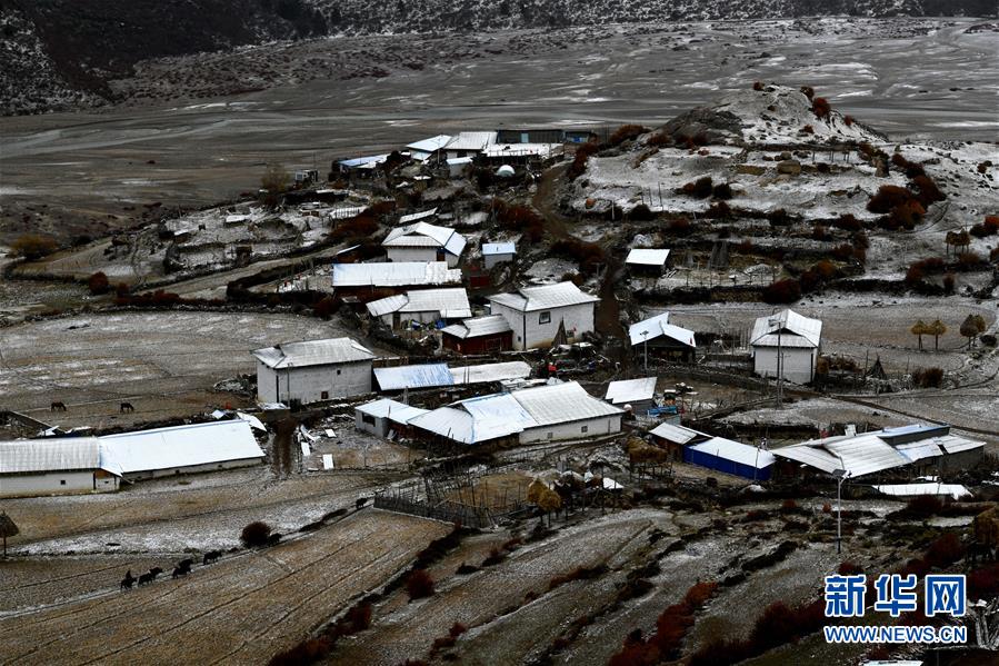 川藏線四川甘孜縣境內(nèi)的雪山和民居(11月3日攝)。新華社記者陳天湖攝