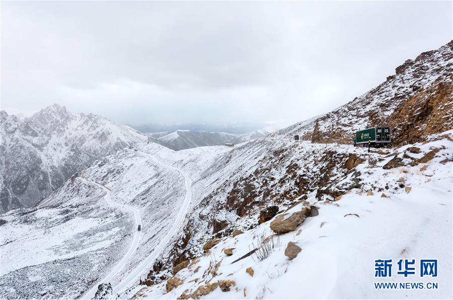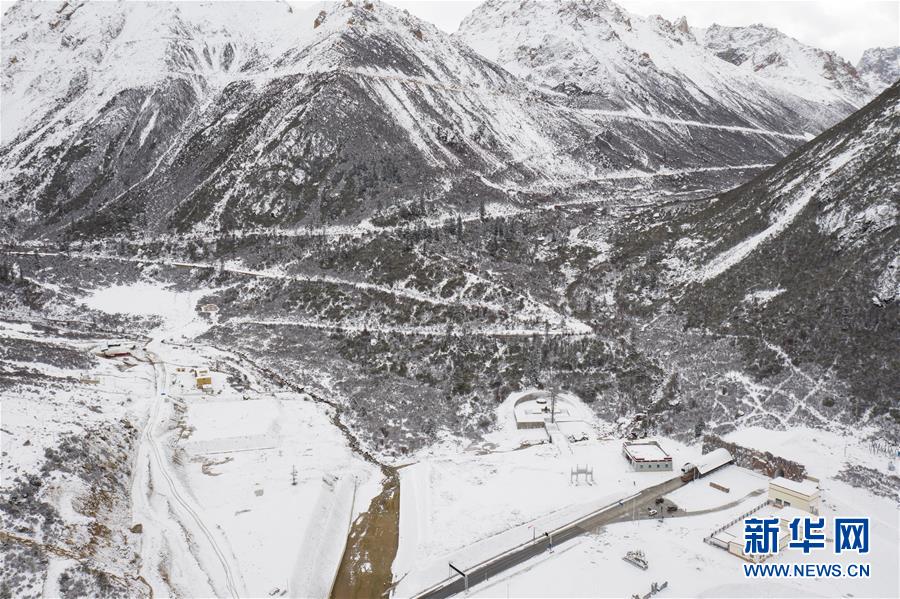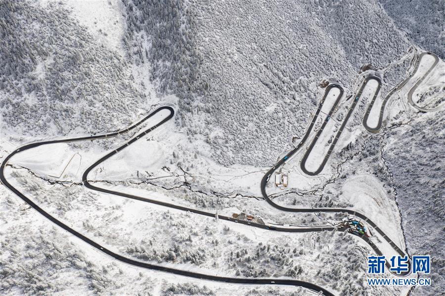 這是318國道剪子彎山段,大雪過后銀裝素裹(10月17日無人機(jī)拍攝)。新華社記者江宏景攝