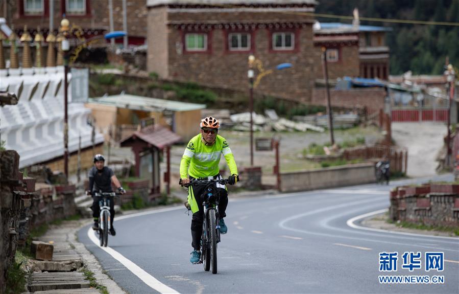 幾名騎游者騎行在川藏公路剪子彎山段(6月25日攝)。新華社記者江宏景攝