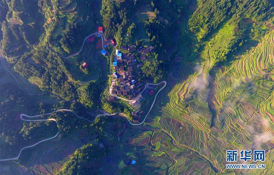 這是融水苗族自治縣桿洞鄉(xiāng)百秀村的村屯公路(6月19日無人機(jī)拍攝)。新華社記者黃孝邦攝