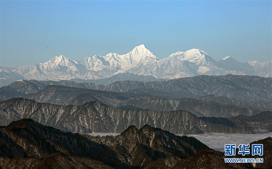 這是12月29日在四川省峨眉山金頂拍攝的景色。時值冬日,峨眉山銀裝素裹、宛如仙境。新華社記者李夢馨攝