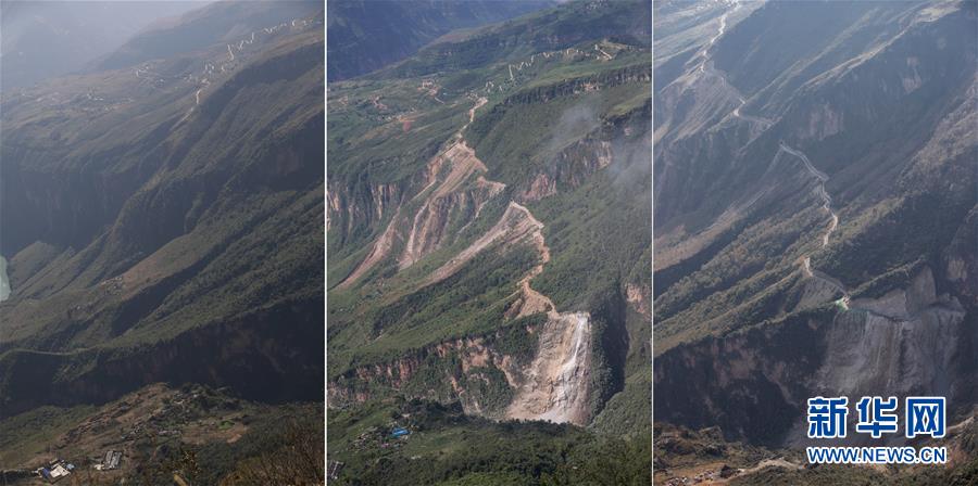 阿布洛哈村通村公路的修建過(guò)程(這是一張拼版照片,從左至右依次拍攝于2018年11月15日、2019年7月18日、2019年12月27日)。3.8公里的通村公路起于布拖縣拉果鄉(xiāng)偉木村,止于烏依鄉(xiāng)阿布洛哈村村委會(huì)。新華社記者江宏景攝