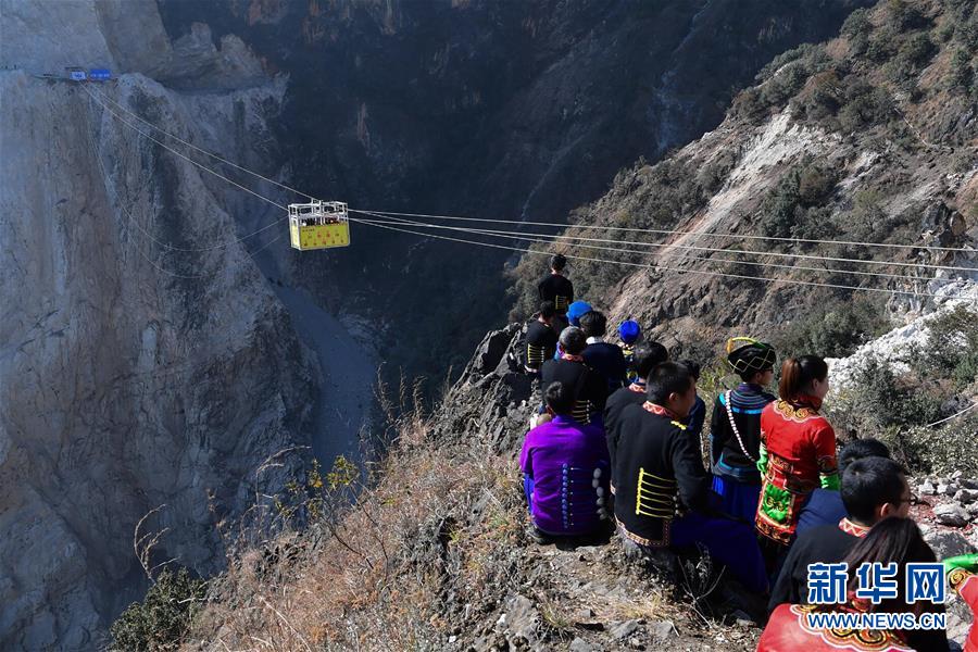 12月31日,擺渡車(chē)開(kāi)始運(yùn)營(yíng),阿布洛哈村村民身著彝族傳統(tǒng)服飾來(lái)參觀。新華社記者江宏景攝