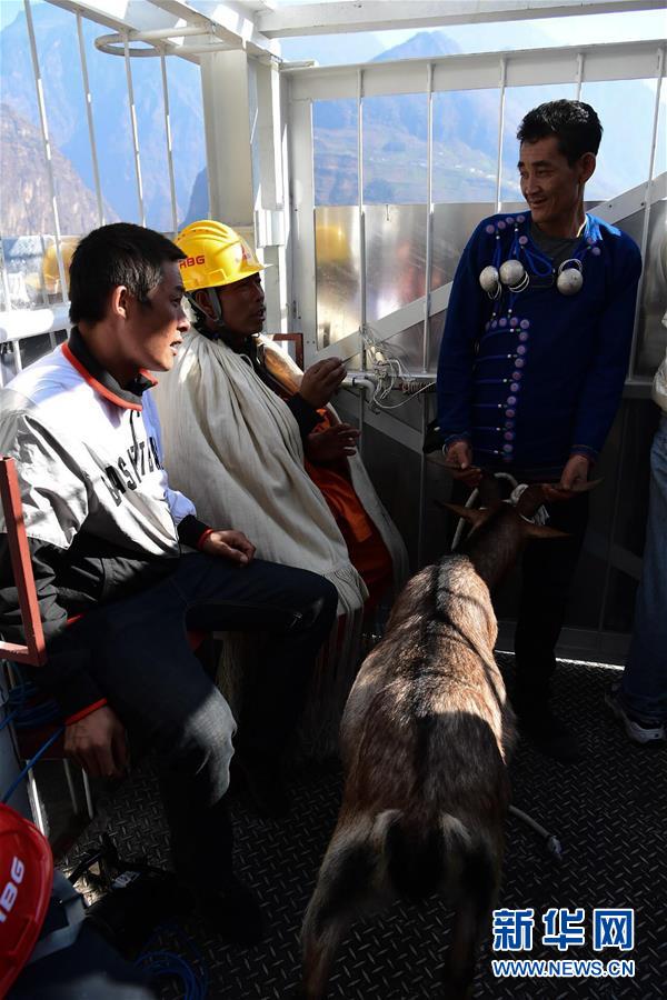 12月31日,阿布洛哈村村民吉爾牛日(右)拉著一頭羊乘坐擺渡車(chē)出村。新華社記者江宏景攝