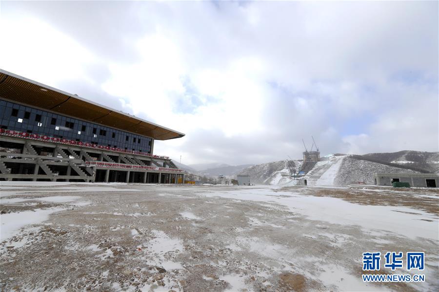 圖為國家冬季兩項(xiàng)中心場館技術(shù)中心(左)和國家跳臺(tái)滑雪中心“雪如意”(攝于12月10日)。新華社記者丁旭攝