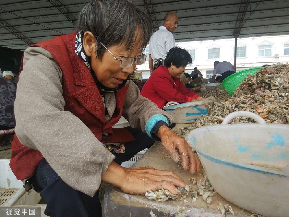 海產(chǎn)豐收的季節(jié)還催生了當(dāng)?shù)鬲?dú)特的工種,這就是分揀工,不少農(nóng)村人在這里靠著分揀海產(chǎn)日賺幾十元。