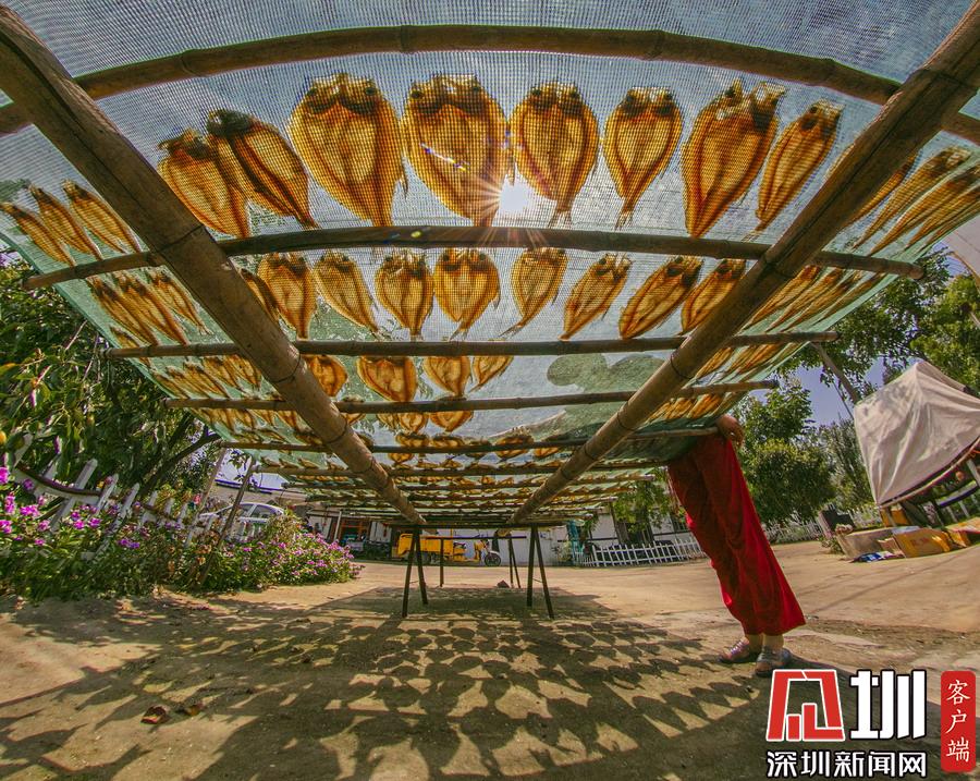 岸上,家家戶戶都在忙著晾曬剛捕撈上來(lái)的毛刀魚、小白魚和武昌魚。