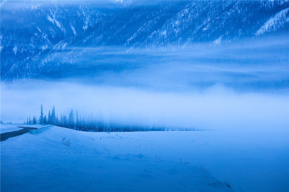 冬季的新疆喀納斯景區(qū)銀裝素裹,雪原、冰湖、霧凇相映,時而如一幅水墨畫卷,時而又似一片童話世界。