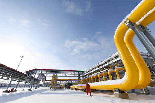 2019年11月19日,在位于黑龍江省黑河市的中俄東線天然氣管道北段黑河首站場區(qū),工作人員從管線旁經過。新華社記者王建威攝