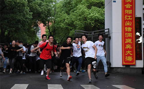 2019年6月8日,高考結束后,考生沖出湖南省長沙市第一中學考點。新華社記者薛宇舸攝